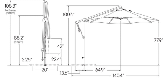 Base Dimensions: 39.4" x 39.4" x 4.5"