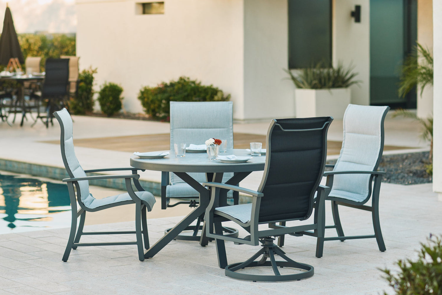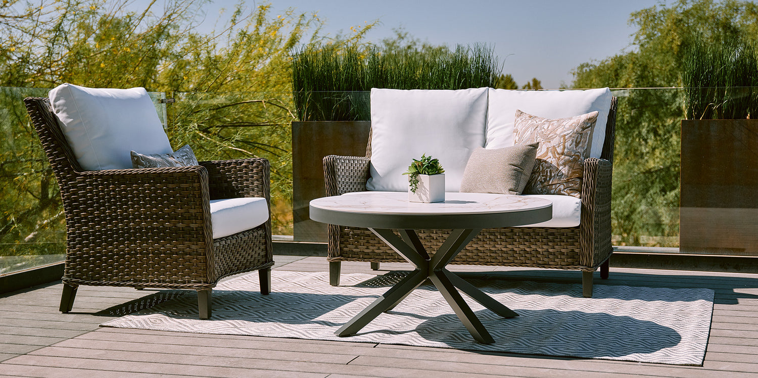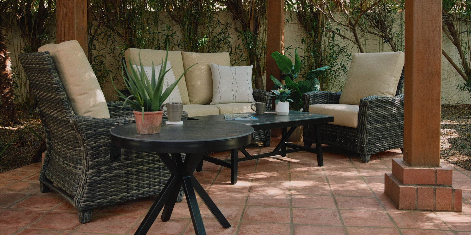 The Rancho Collection captures classic charm with its scrolled arms and rust-free aluminum frame.