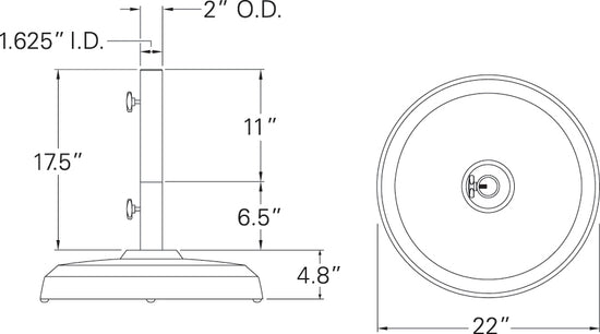 - Fits an umbrella pole with a diameter of up to 1.5″.